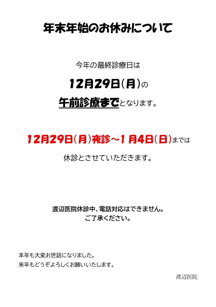 【渡辺医院】令和7-8年 年末年始 休診のお知らせ